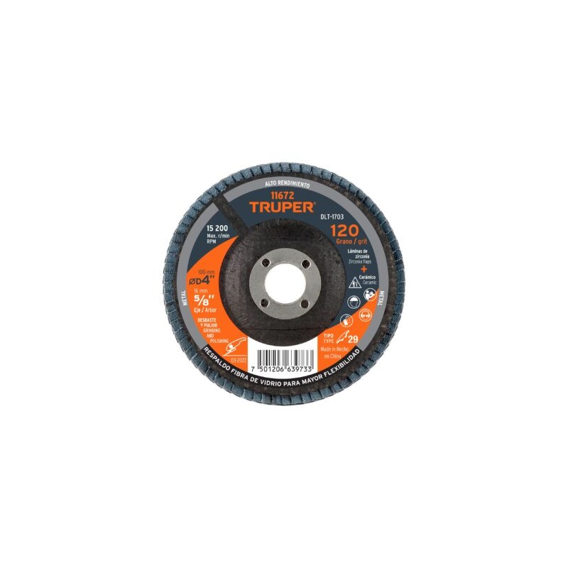 DISCO LAMINADO 4?, GRANO 120 CENTRO 5/8?