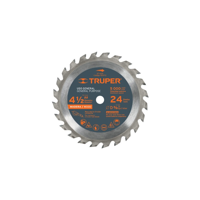 DISCO SIERRA P/MADERA 4-1/2?, 24 DIENTES, CENTRO 3/8?
