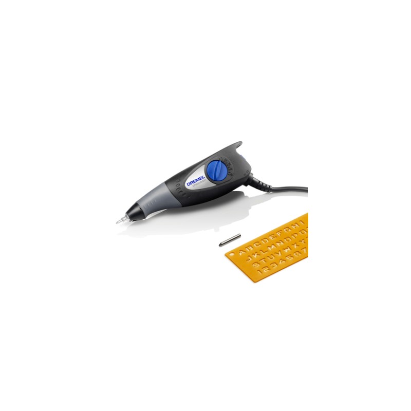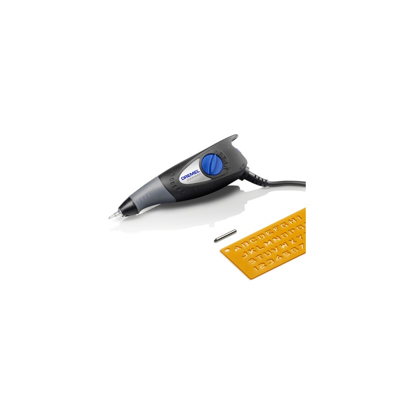 La punta de carburo sustituible permite grabar en la mayoría de superficies.